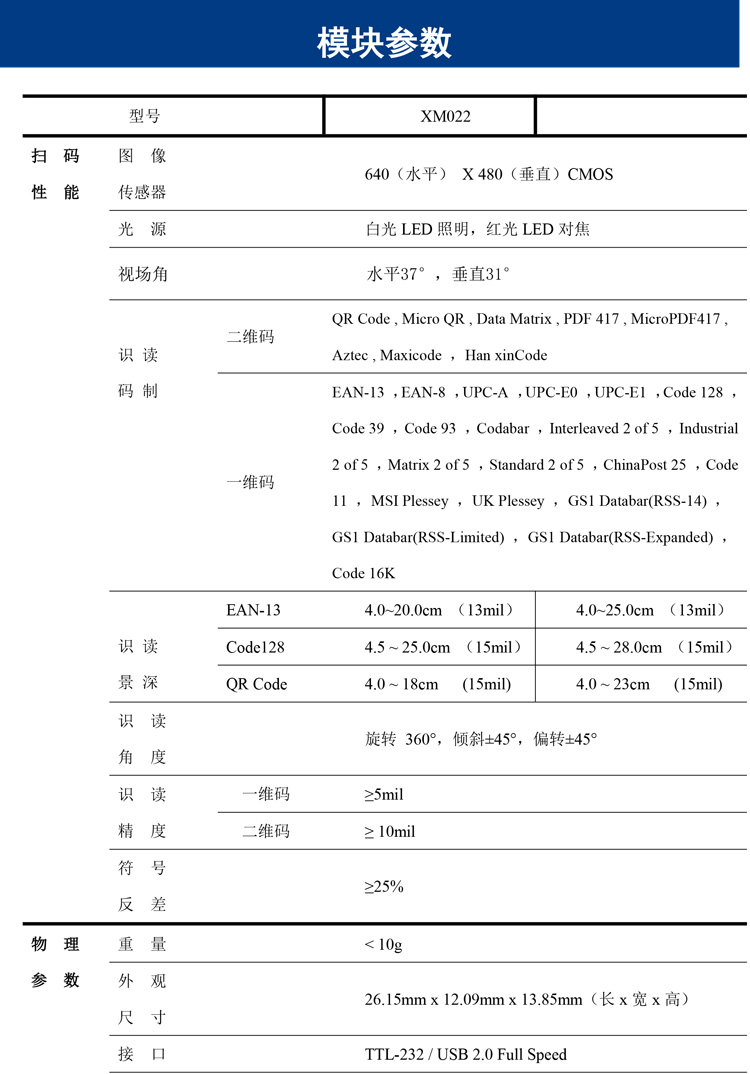 XM022H 二维扫码模块