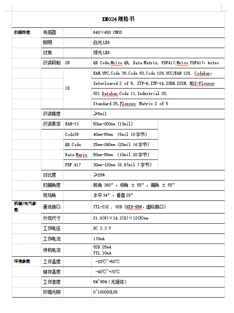 XM024 二维扫码模块