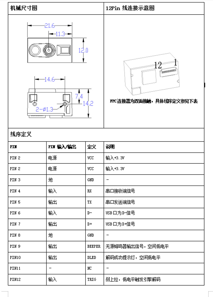 XM022H 二维扫码模块