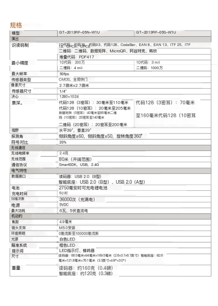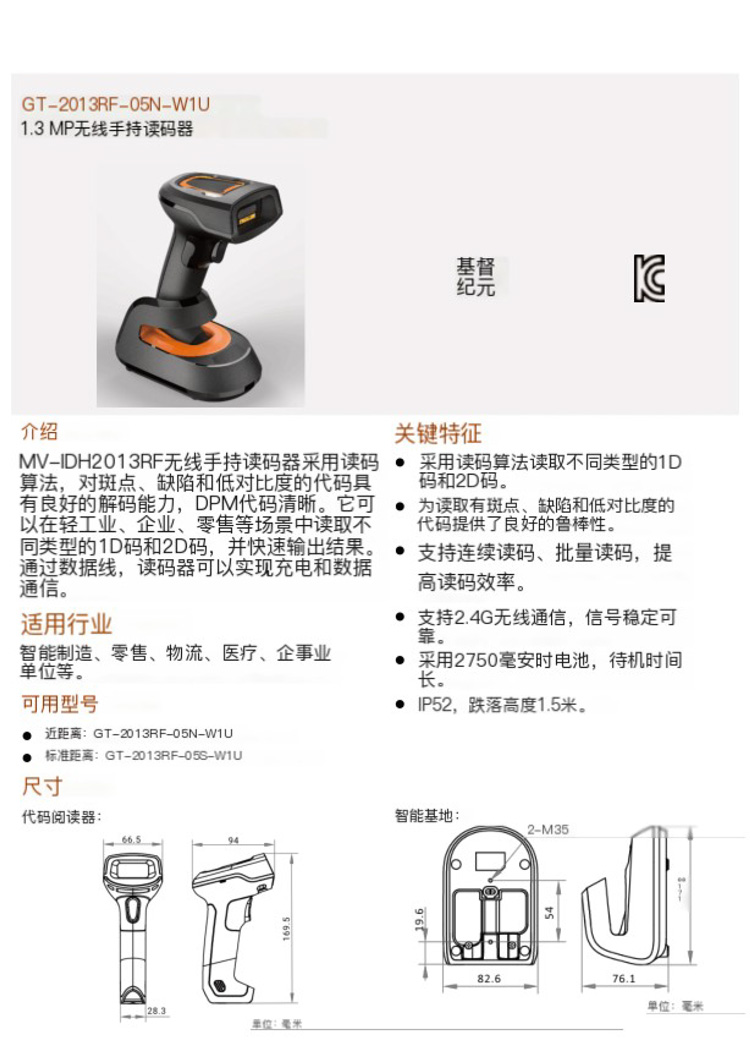 GT-2013B 130万像素工业级无线手持读码器